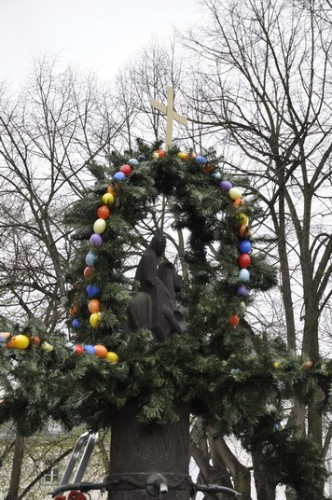 Angeregt hatte die Idee der Beigeordnete der Stadt Neuwied und Engerser, Jürgen Moritz, der die Tradition der Osterbrunnen aus dem fränkischen Land kannte. Er informierte den Ortsbeirat von seiner Idee und die Begeisterung war bei allen Beteiligten gleich. Der Bürgerverein Engers, der Verschönerungsverein und der Ortsbeirat schlossen sich zusammen um die Realisierung des Osterbrunnens auf den Weg zu bringen. Viele freiwillige Helfer kamen über einige Wochen zusammen, um das Gestell zu fertigen. Rund 100 Arbeitsstunden investierten die Helfer und das robuste Stahlgerüst erstellte Norbert Meurer. Ohne Bohrungen oder Beschädigungen des historischen Brunnens wurde die Osterkuppel errichtet. 50 Meter Girlanden und 1000 Eier zieren jetzt den Brunnen, der zum Blickfang wurde. Finanziell ermöglicht hat dies die Sparkasse Neuwied und Ortsvorsteher Richard Erben, der auch schon einen Ausblick auf das nächste Jahr gab: »Die Engerser Grundschulkinder können sich am Osterbrunnen beteiligen, indem sie ihre individuellen Eier bemalen, die dann einen Platz an der Krone finden.« Die Einsegnung des Osterbrunnens nahm Pastor Heinz Christ vor und somit war der Brunnen feierlich eingeweiht. |